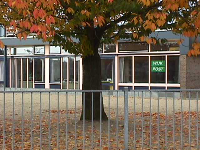 Jan Croes). Rechts het buitenaanzicht van de Wijkpost gezien vanaf de Thorbeckestraat.